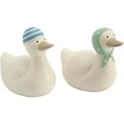Norman and Nora Ceramic Ducks in Bathing Caps