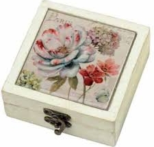 Distressed Box with Floral Tile Top