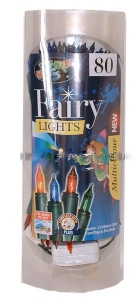 80 Multicoloured fairy lights complete with fitted 13 amp plug (BS 1363), Protected by a 3 amp fuse and operates on 230/240V.