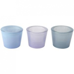 Chunky and practical and in three muted toning colours.  These tea light holders are heavy enough to stay firmly in place and deep enough so the tealight stays alight in draughts, so great for outdoor dining.