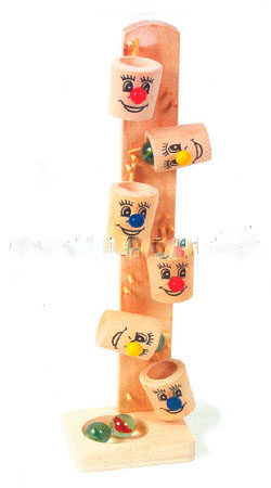Watch the clown faces tip from side to side as the marbles drop from one cup to another.