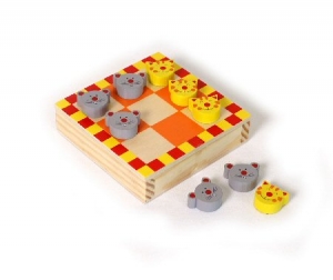 This little wooden box contains the pieces for a traditional noughts and crosses game.
