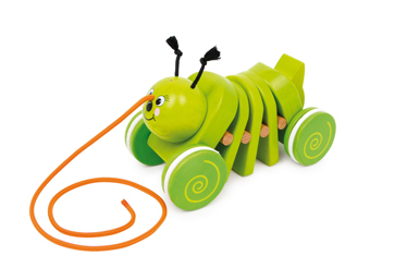 This colourful chap with his big grin is made of beechwood, and as he follows your youngster around he wobbles and rattles.
